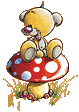 nounours Pimbolie cuile des champignons il en trouve un gros et sasoi desus